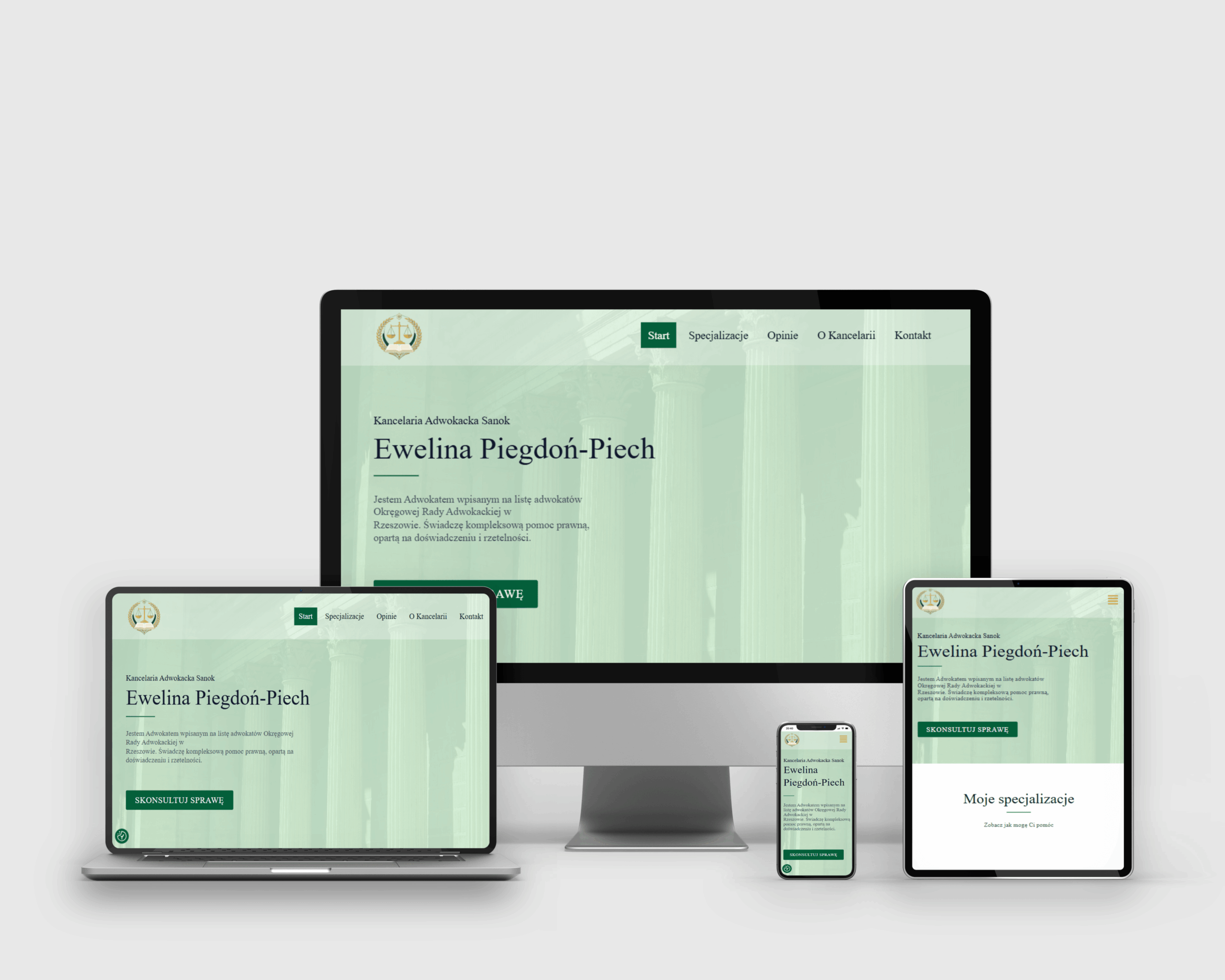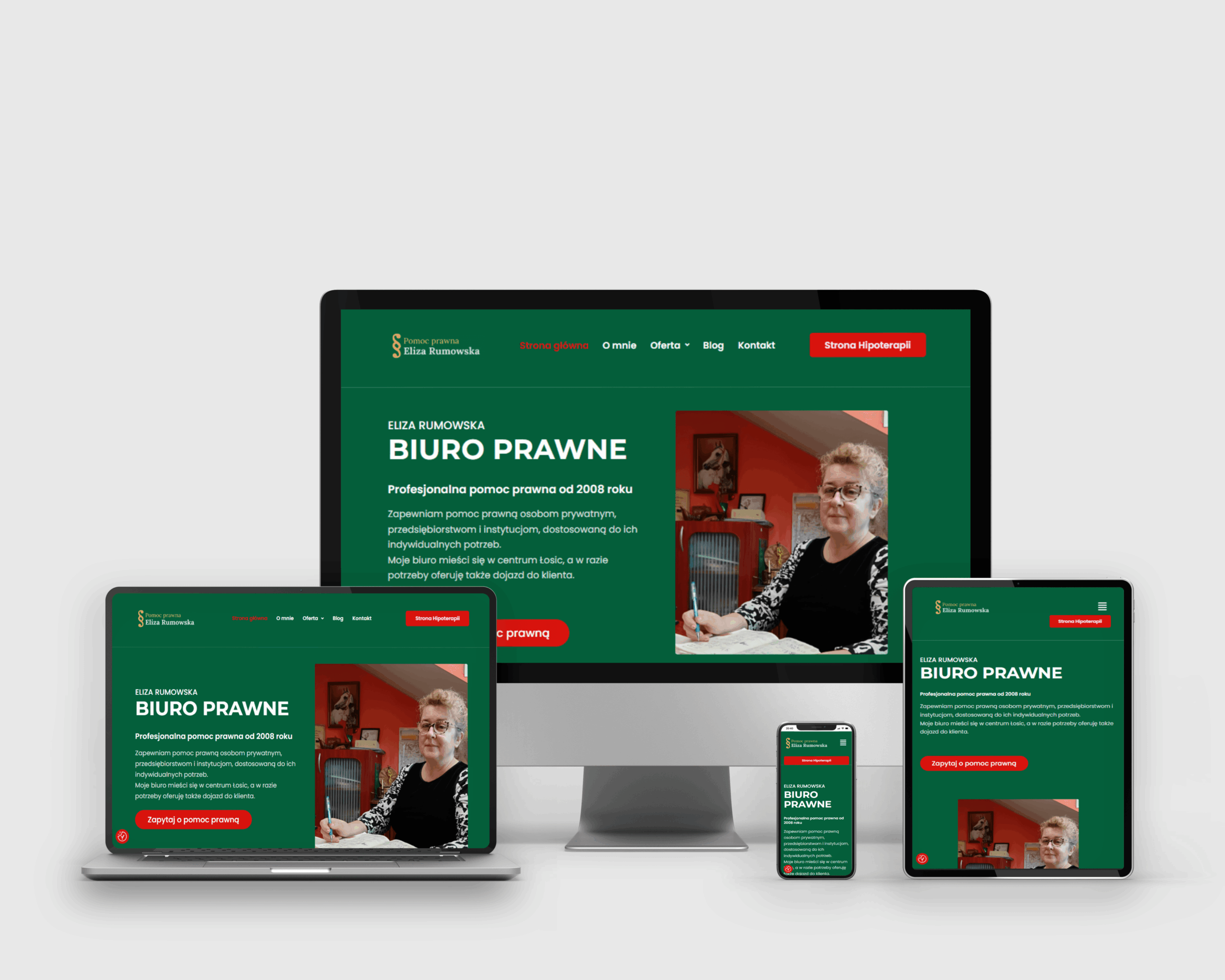 Projekt strony internetowej dla kancelarii adwokackiej, mający na celu profesjonalne zaprezentowanie oferty oraz zwiększenie widoczności w Google.